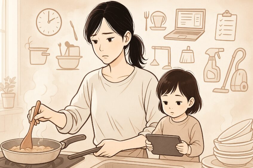 ワンオペとは、パートナーの単身赴任や長時間労働など、様々な理由から家事や育児のほとんどを一人で担わなければならない状況を指します。朝から晩まで、子どもの世話をしながら食事の準備をし、掃除や洗濯をこなし、時には仕事まで。複数のタスクを同時に、そして絶え間なく抱えるため、心身にかかる負担は計り知れません。