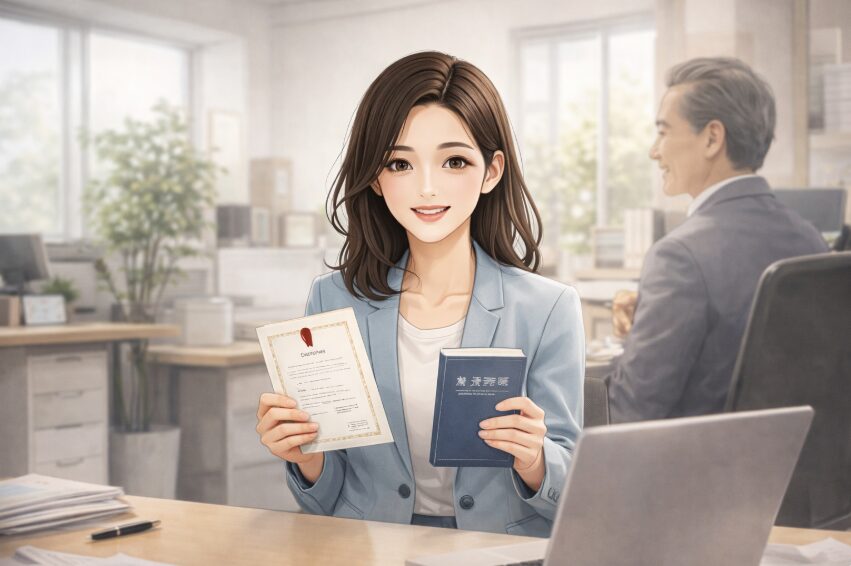 給料が上がりにくいというデメリットをお伝えしましたが、それをカバーする強力な武器が「資格」です。特に「宅地建物取引士(宅建)」の資格を持っていれば、事務職であっても月1万円〜3万円程度の資格手当が支給される会社が多いです。