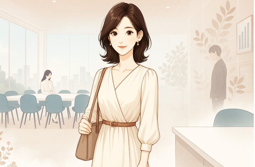 ファッションの完成度を左右するのが、バッグや靴、アクセサリーといった小物です。職場にふさわしい上質でシンプルな小物は、あなたの品格を高めてくれます。アクセサリーは、大ぶりのものではなく、一粒ダイヤのネックレスや、揺れるタイプの小ぶりなピアスなど、繊細なデザインのものを選ぶと、女性らしさが引き立ちます。時計やバッグは、少し質の良いものを持つことで、全体のコーディネートが格上げされます。